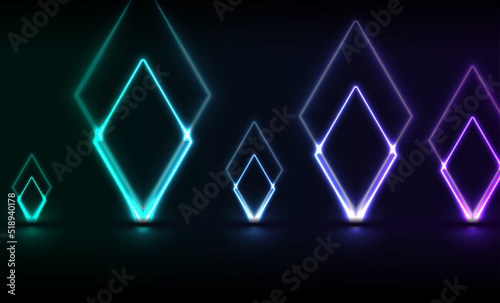 Cyan violet neon laser rhombuses technology background. Futuristic glowing graphic vector design