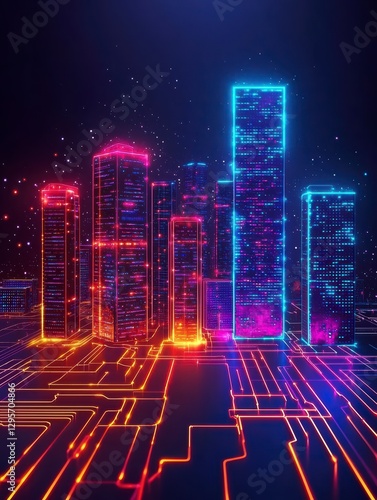 Cyber City: A stunning digital rendering showcases a futuristic cityscape illuminated by vibrant neon lights.