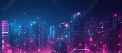 Cyber City: Digital Skyline's Vibrant Network Illuminates Night, Futuristic Urban Landscape with Glowing Structures