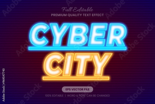 Cyber City Neon Blue Yellow editable text effect, font graphic style for vibrant graphic design projects, advertising, social media, or modern art concepts.