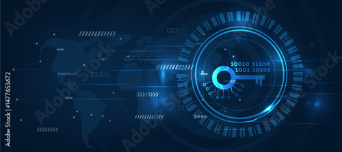cyber key protection over internet abstract background with blue lights