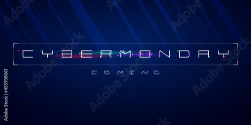 Cyber Monday banner with glitch effect. Title CYBER MONDAY in cyberpunk style with distortion effect and HUD style frame. Design for web banner. Vector