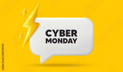 Cyber Monday Sale tag. 3d speech bubble banner with power energy. Special offer price sign. Advertising Discounts symbol. Cyber monday chat speech message. 3d offer talk box. Vector