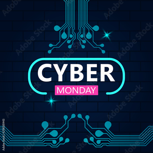 Cyber monday sale with circuit board background. Promotional online sale event.