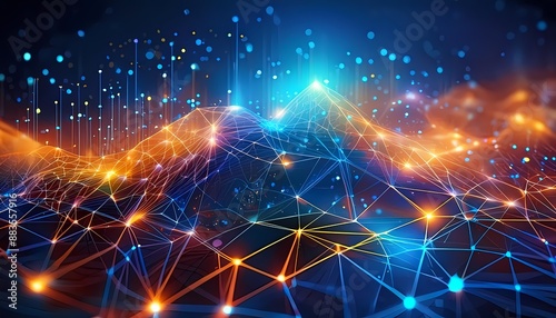 Cyber network connection background. Big data visualization. Technology backdrop. Generative ai image