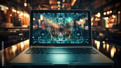 Cyber Security and Data Protection Concept. Locked Screen Laptop