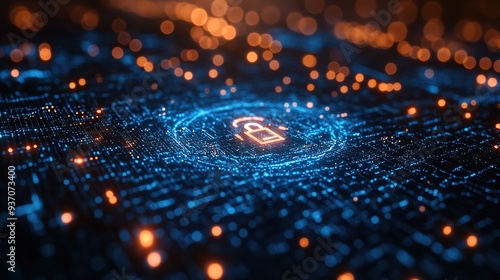 Cyber security and information network protection with lock icon. Future technology network for business and internet marketing concept.