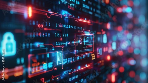 Cyber Security Concept - Close-up of Computer Screen with Firewall and Lock Icons