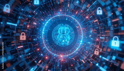 Cyber Security Concept: Digital Locks Protecting User Data