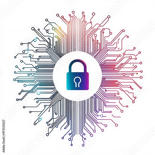 Cyber Security Concept, Padlock Icon in Circuit Board Design