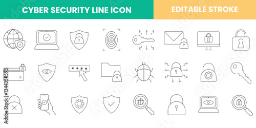 cyber security icon set, cyber icon, cyber security symbols, customizable stroke