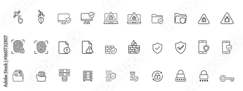 cyber security line icon for Satellite Communication , Padlock Protection, Secure Binary, Server Rack , Folder Line ,Smartphone Security, Secure Shield, Firewall Security, File Warning ,Fingerprint