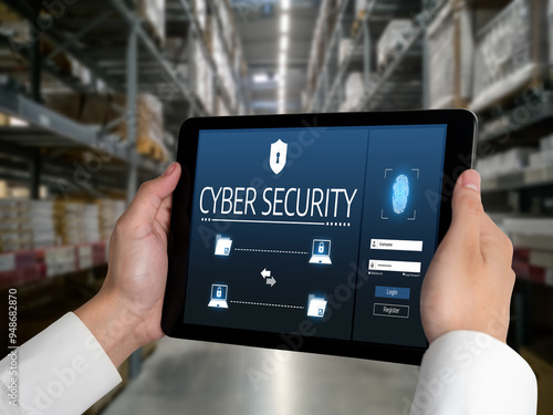 Cyber security system on computer screen protect private information snugly from hacker and cyber attack