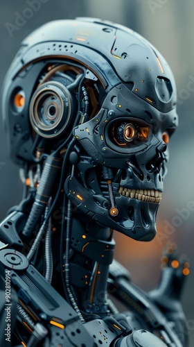 Cybernetic being with intricate mechanical details, futuristic concept,