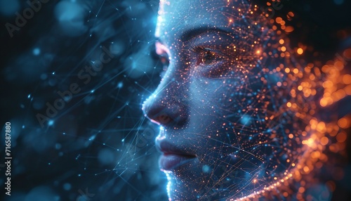 Cybernetic Harmony, Explore the fusion of organic and cybernetic features in an abstract digital human face, AI GENERATIVE