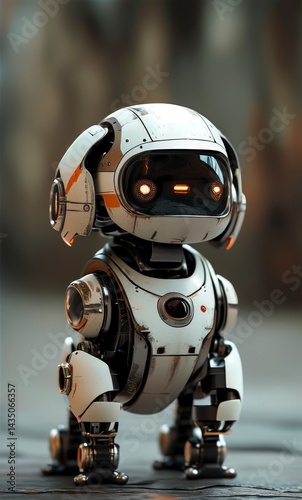 Cybernetic Pup: A futuristic, robotic puppy with an endearing gaze stands poised, blending the charm of a canine companion with advanced technology.