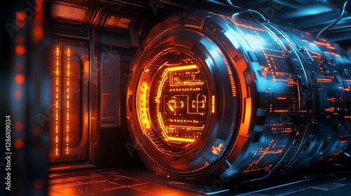 Cyberpunk 3D tech Orange and Blue Glowing Tech