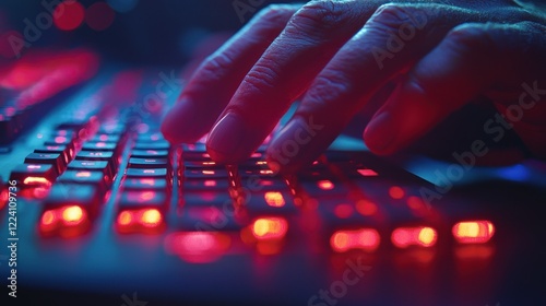 Cyberpunk Aesthetic: Hands Typing on a Glowing Keyboard