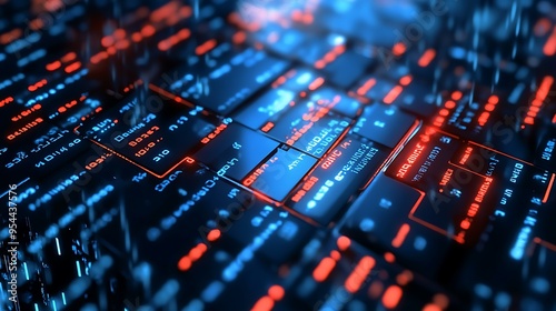 Cyberpunk Futuristic Digital Interface with Red and Blue Glowing Keys