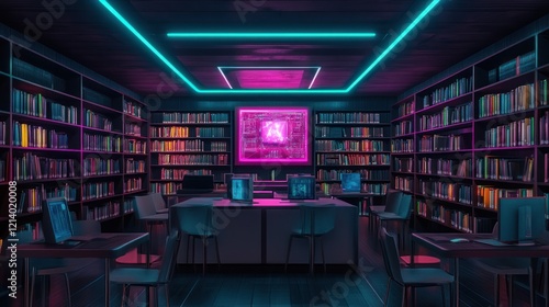 Cyberpunk Library: Neon Nights in a Digital Archive