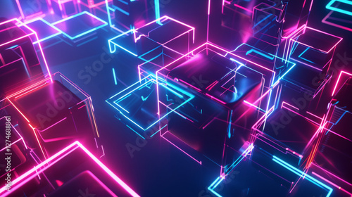 Cyberpunk Neon Glow Abstract Background with Speed Light Streaks