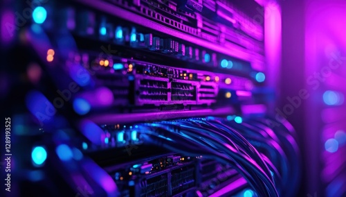 Cyberpunk Server Room: Neon Lights Illuminate Data Center