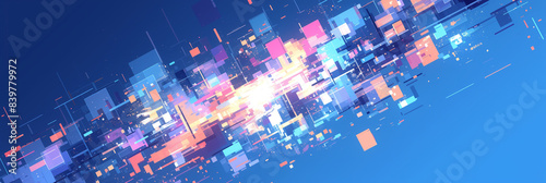 Cyberpunk Technical background abstraction UI UX modern trendy design. Place for text. Lines squares. Template poster invitation banner email header. 3D Digital art. Horizontal. Generative Ai content