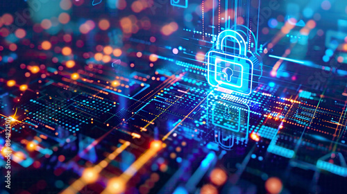 Cybersecurity concept illustrating user privacy security and encryption for secure internet access. Future technology and cybernetics theme featuring a screen padlock.