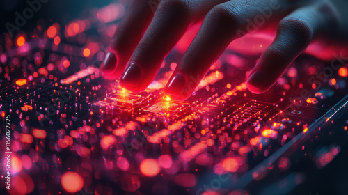 Cybersecurity Concept: User Typing Login and Password on Digital Screen