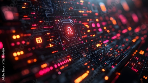 Cybersecurity concept with lock icons on digital screen preventing data breaches and protecting privacy