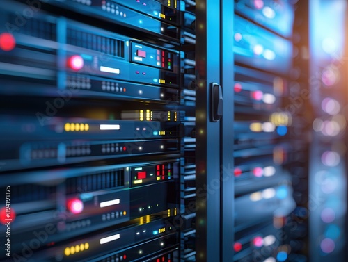 Cybersecurity Defense Arsenal: Intrusion Detection Systems in Server Room with Ethereal Blend Mode Backdrop