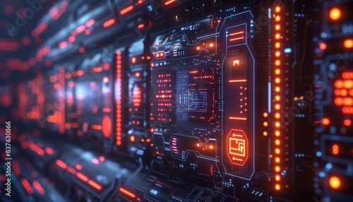 Cybersecurity firewall, digital barrier, encrypted data protection, futuristic interface, high detail, neon lights, 3D rendering, blue tones