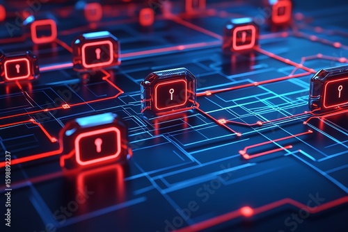 Cybersecurity Network with Glowing Key Lock Icons for Digital Protection
