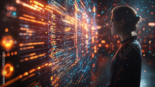 Cybersecurity Programmer Coding on Glowing Digital Interface with Protective Layers