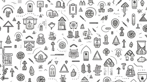 Cybersecurity Protection Icons Set Such as Firewalls Data Encryption and Biometric Authentication Displayed on a White Surface