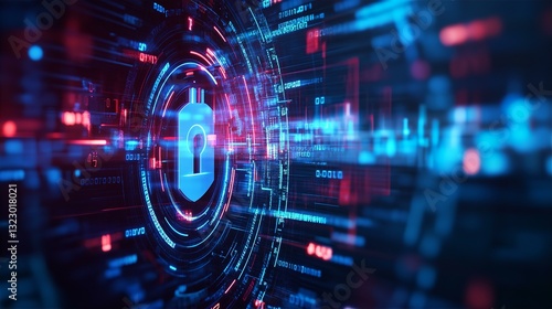 Cybersecurity Shield: Digital Data Protection Abstract Background Neon Blue Red Technology Network Security Concept