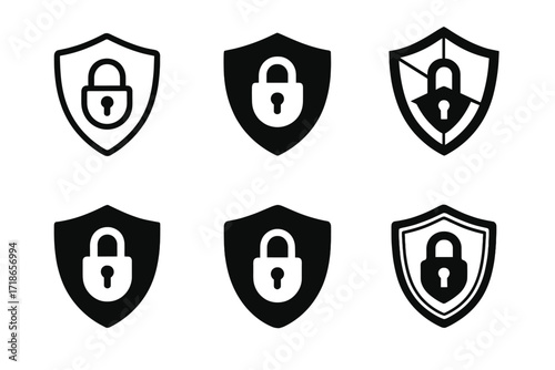 Cybersecurity Shield Logos. Cybersecurity. Set Logo of Cybersecurity: Shield lock. 6 harmonious logo variations of the same