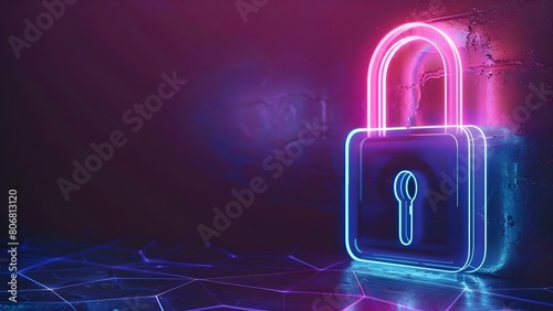 Cybersecurity Symbolism: Neon padlock keyhole with glowing connections network in dark internet security concept. Concept Cybersecurity, Symbolism, Neon, Padlock, Keyhole, Glowing, Connections