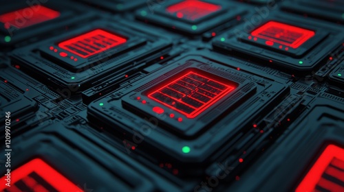 Cybersecurity Threat Hunting Incident Response concept. Glowing Interconnected Servers Displaying Digital Breached Network in Futuristic Setting