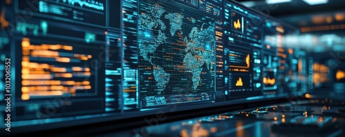 Cybersecurity threat map displayed on a large digital screen in a control room