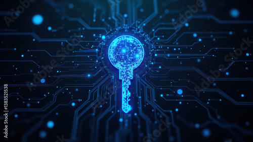 Cybersecurity-themed digital illustration with a key inside an electronic brain surrounded by circuitry.