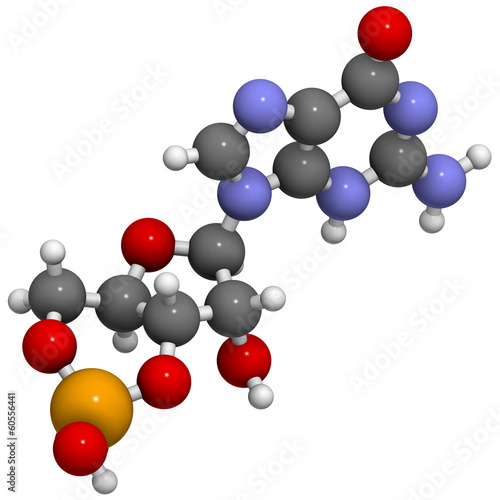 Cyclic guanosine monophosphate (cGMP) molecule.