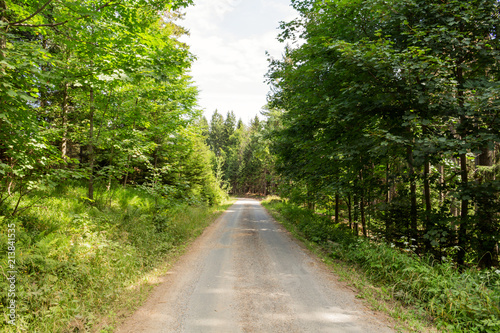 Cycling in Nature Forest on a rainy day. Road in Forest nature. Green forest road. Nature. Road. Natural environment.