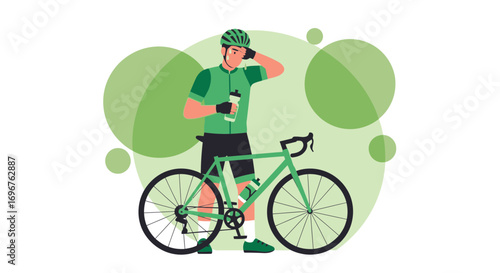 Cyclist Refreshes After Intense Exercise, With Bicycle, Green Hues and Modern Style