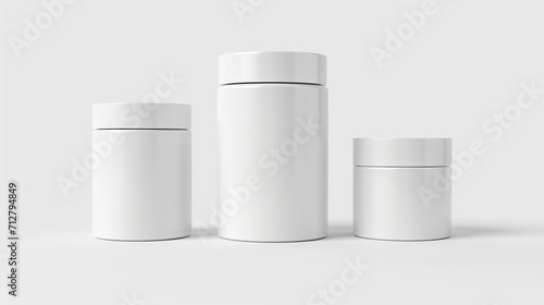 Cylinder package mockup – a white, round, Plastic empty box suitable for food, soup, tea, coffee, or cosmetic cream products. Isolated canister mockup for various applications. Generative AI