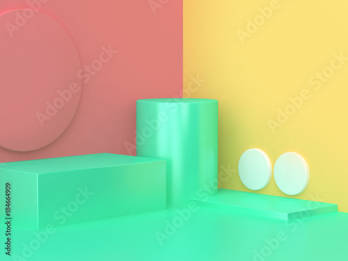 cylinder pink green yellow abstract wall corner 3d rendering