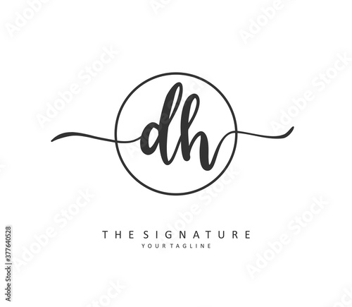 D H DH Initial letter handwriting and signature logo. A concept handwriting initial logo with template element.