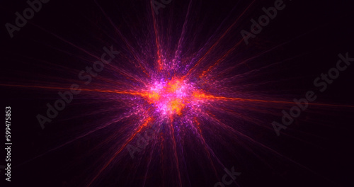 D rendering abstract multicolored fractal light background with bright center