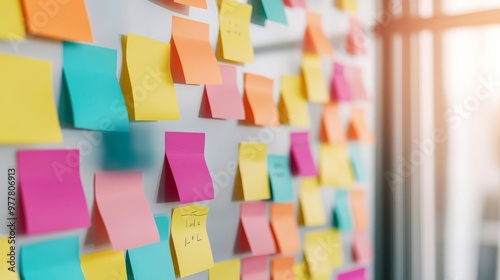 Daily horoscope board with colorful post-it notes in an office, fun and inspirational