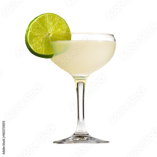 Daiquiri alcoholic beverage with a lime wheel and ice PNG transparent background